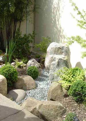 garden area in the courtyard. Bamboo trees are applied closer to the